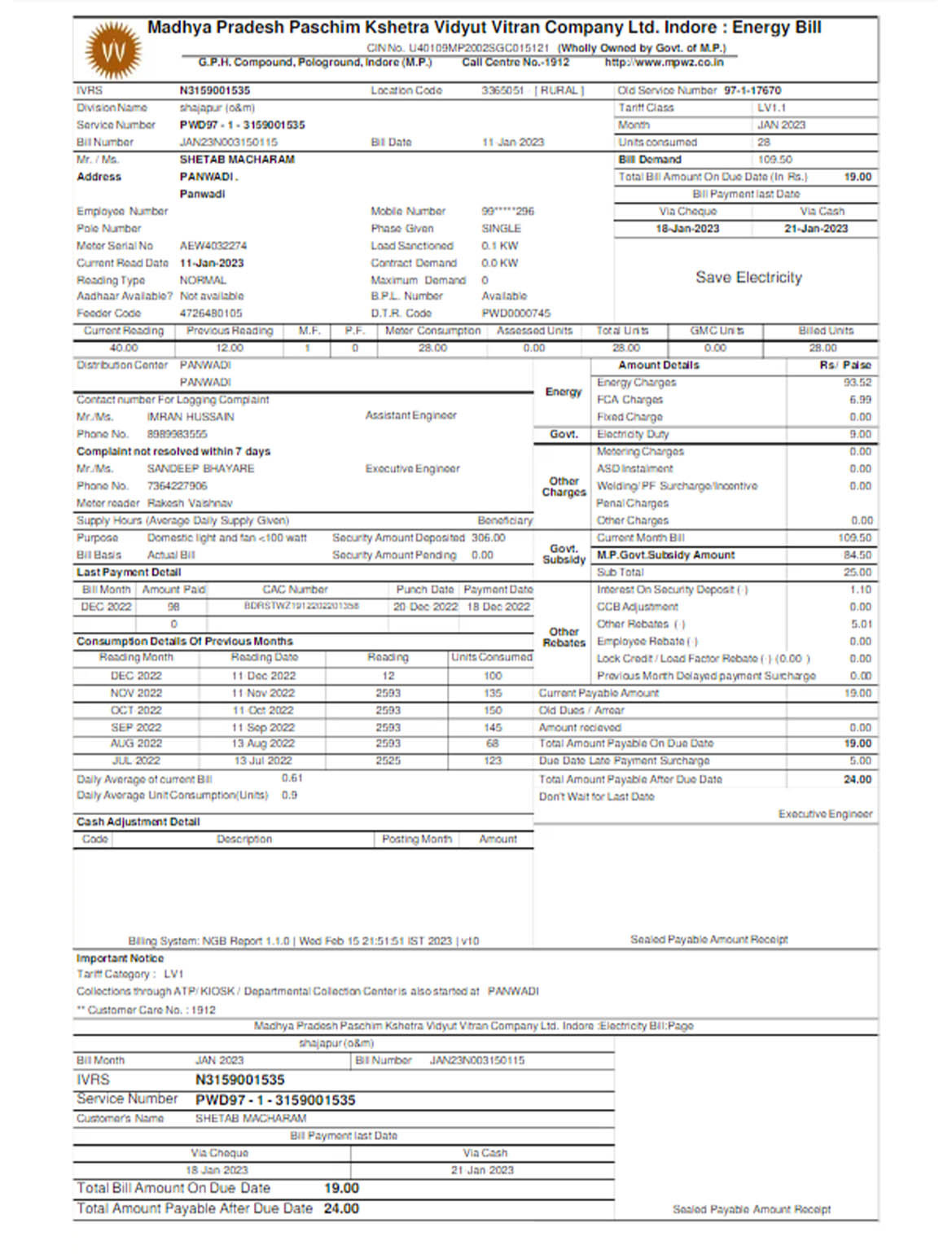 MPWZ, is a state-owned electricity distribution company operating in the western region of Madhya Pradesh, India. Established to manage and distribute electricity efficiently, MPWZ plays a crucial role in providing reliable power supply to its consumers. MPWZ is responsible for various functions including electricity distribution, maintenance of distribution networks, metering, billing, and customer service. The company serves both urban and rural areas, catering to the diverse electricity needs of residential, commercial, industrial, and agricultural consumers
